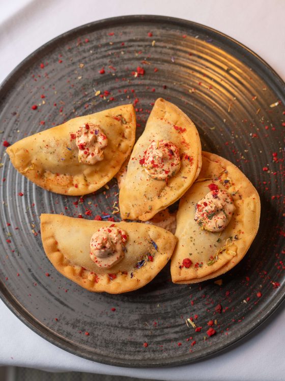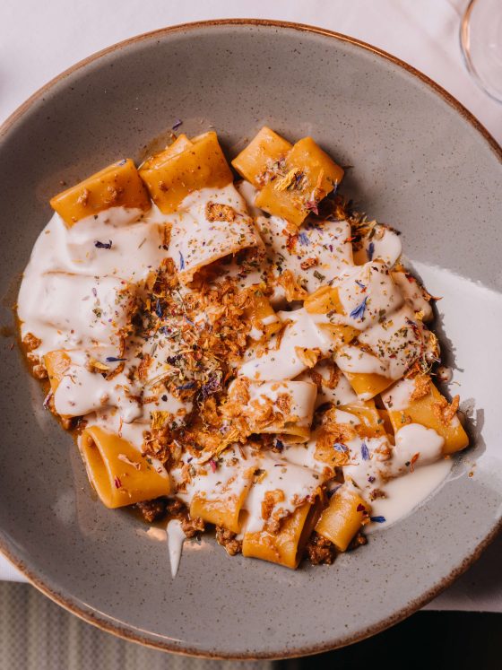 μοσχαράκι ραγού | κρέμα γραβιέρας | πούδρα κρεμμυδιού